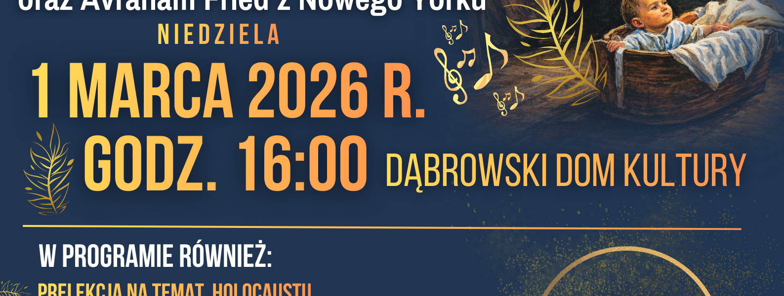 Starosta Dąbrowski Lesław Wieczorek serdecznie zaprasza na projekcję wyjątkowego koncertu beatyfikacyjnego „Rodzina Ulmów – Sprawiedliwi z Markowej”, która odbędzie się w niedzielę 1 marca 2026 r. o godz. 16:00 w Dąbrowskim Domu Kultury.